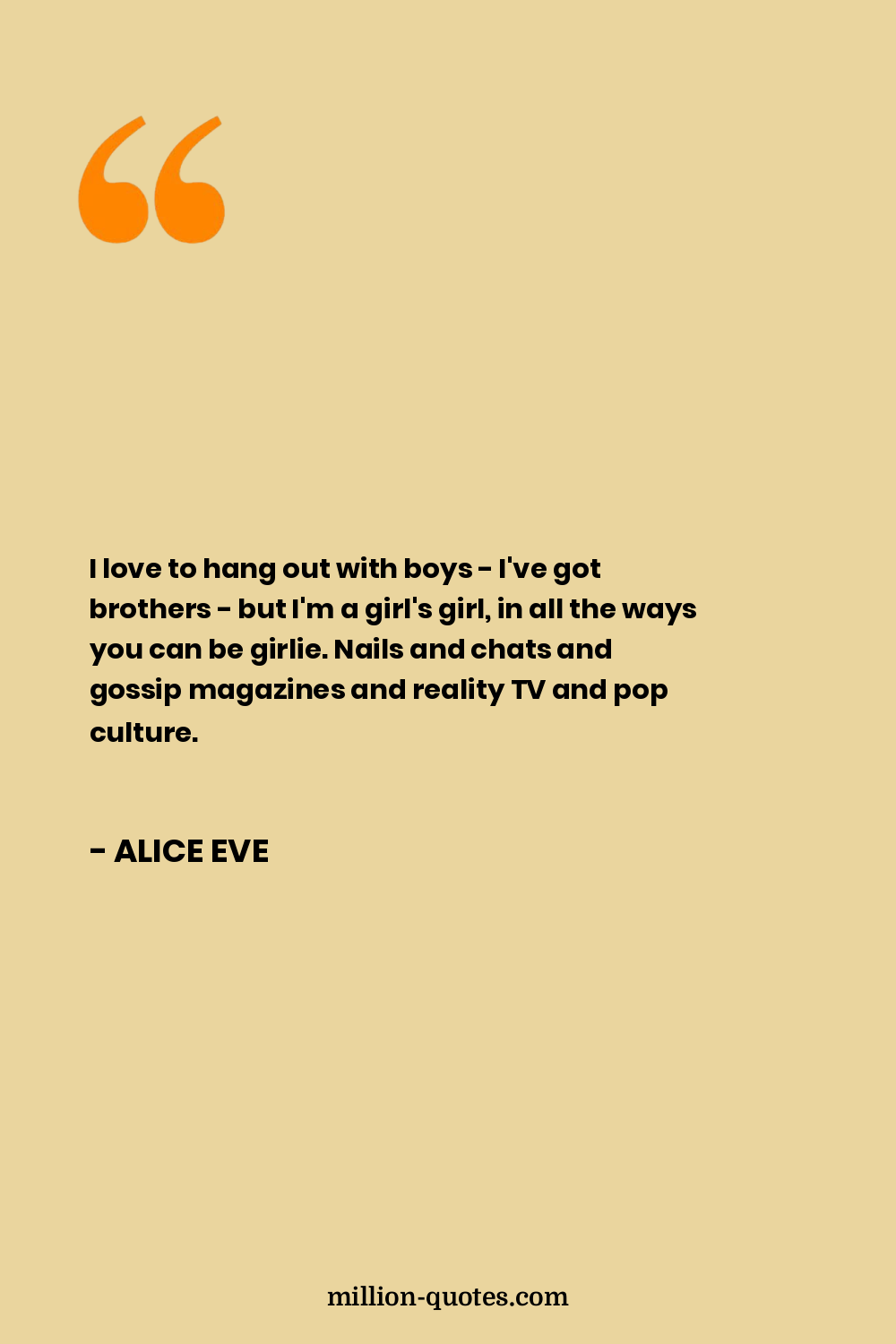 I love to hang out with boys - I've got brothers - but I'm a girl's girl, in all the ways you can be girlie. Nails and chats and gossip magazines and reality TV and pop culture.