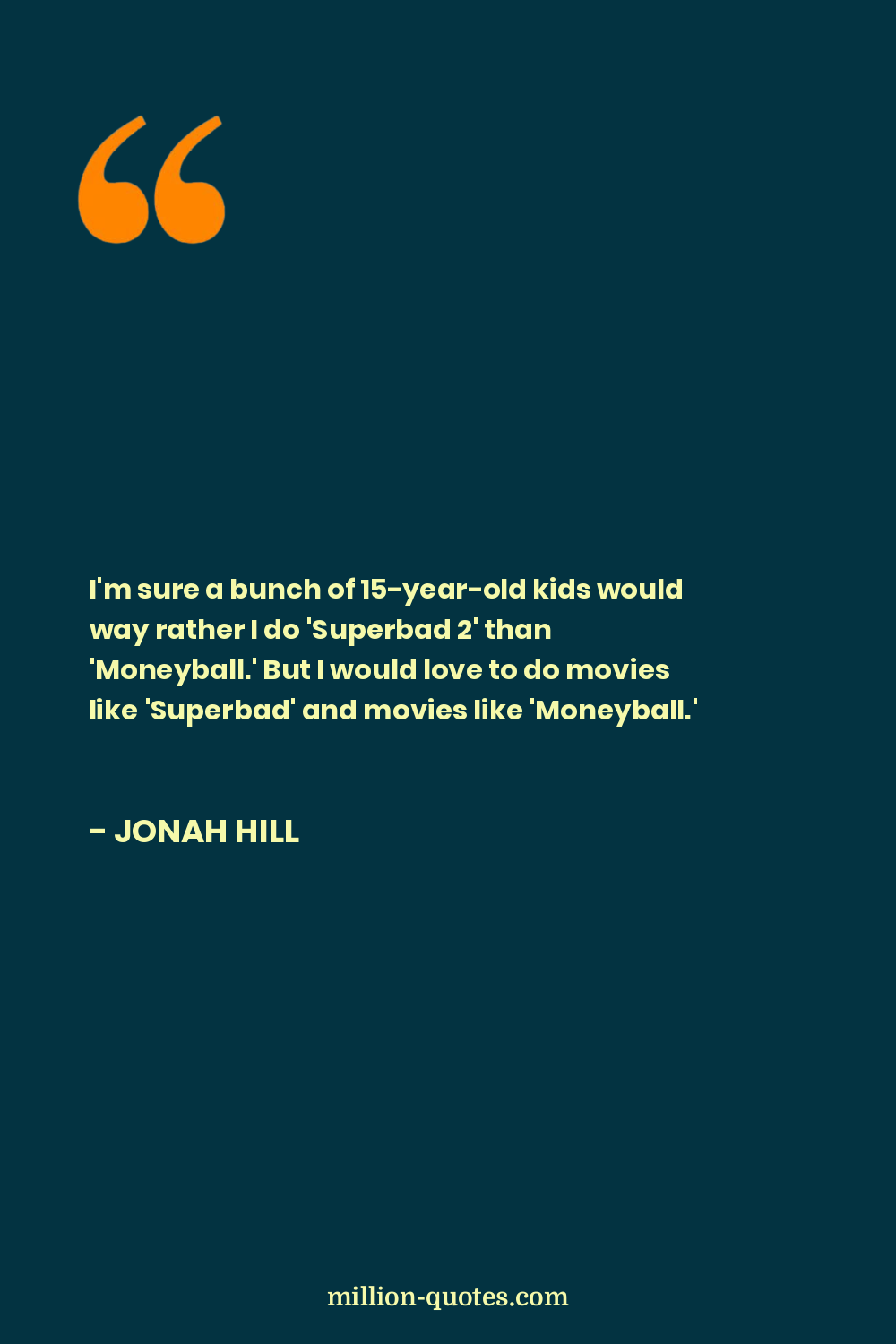 I'm sure a bunch of 15-year-old kids would way rather I do 'Superbad 2' than 'Moneyball.' But I would love to do movies like 'Superbad' and movies like 'Moneyball.'