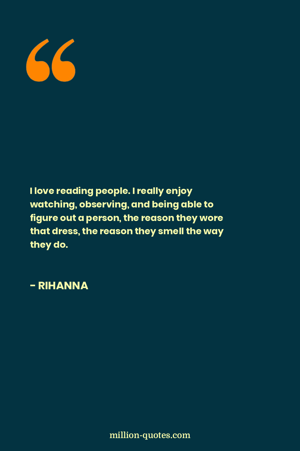 I love reading people. I really enjoy watching, observing, and being able to figure out a person, the reason they wore that dress, the reason they smell the way they do.