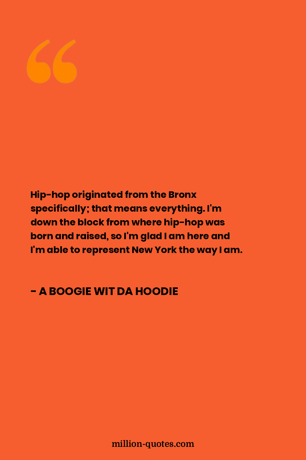 Hip-hop originated from the Bronx specifically; that means everything. I'm down the block from where hip-hop was born and raised, so I'm glad I am here and I'm able to represent New York the way I am.