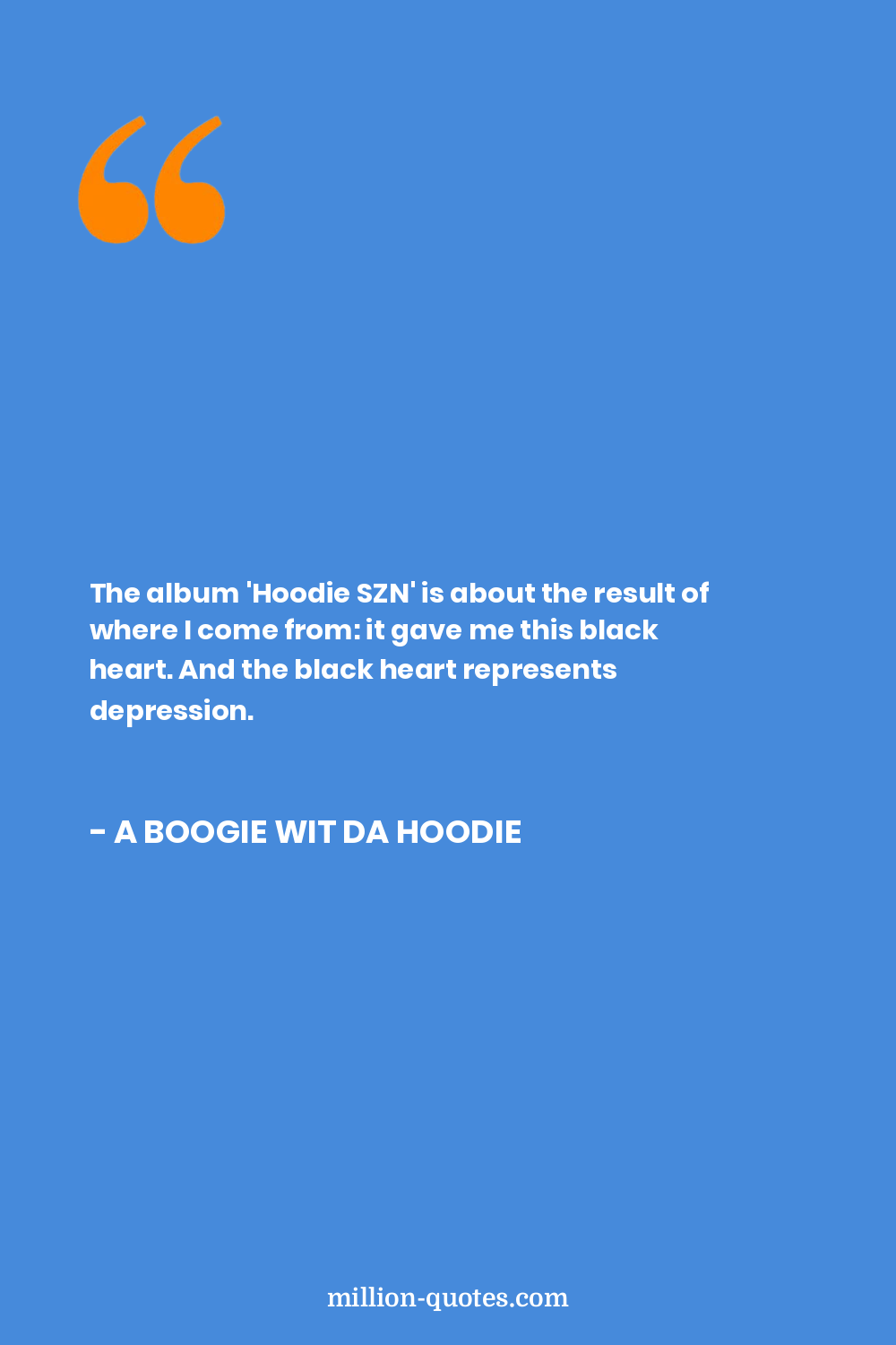 The album 'Hoodie SZN' is about the result of where I come from: it gave me this black heart. And the black heart represents depression.
