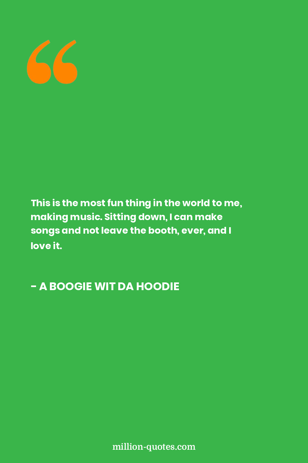 This is the most fun thing in the world to me, making music. Sitting down, I can make songs and not leave the booth, ever, and I love it.