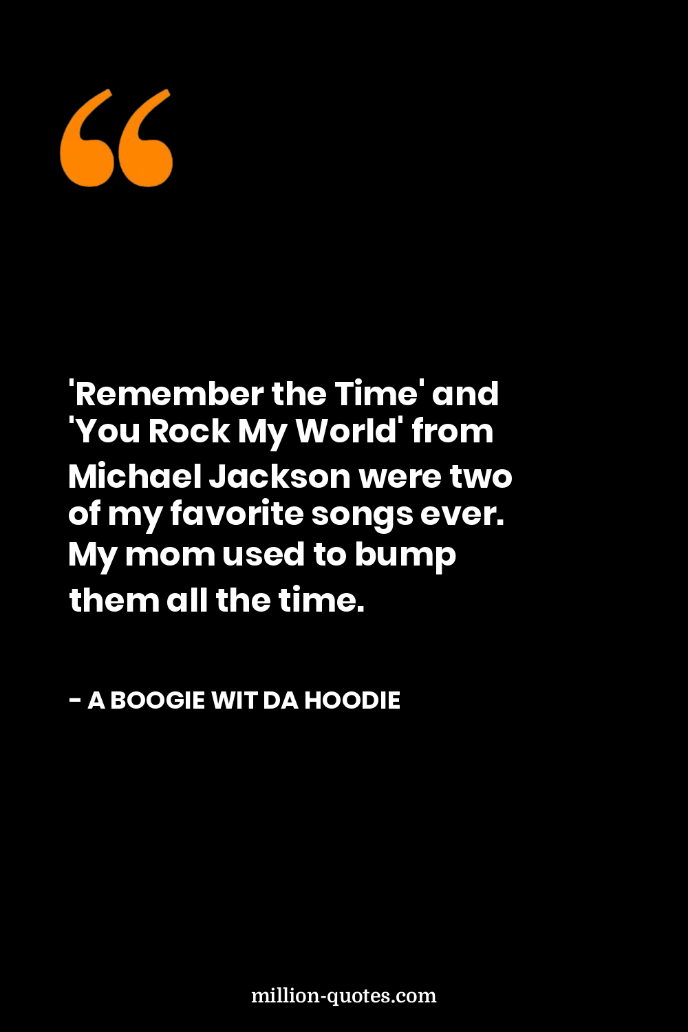 'Remember the Time' and 'You Rock My World' from Michael Jackson were two of my favorite songs ever. My mom used to bump them all the time.