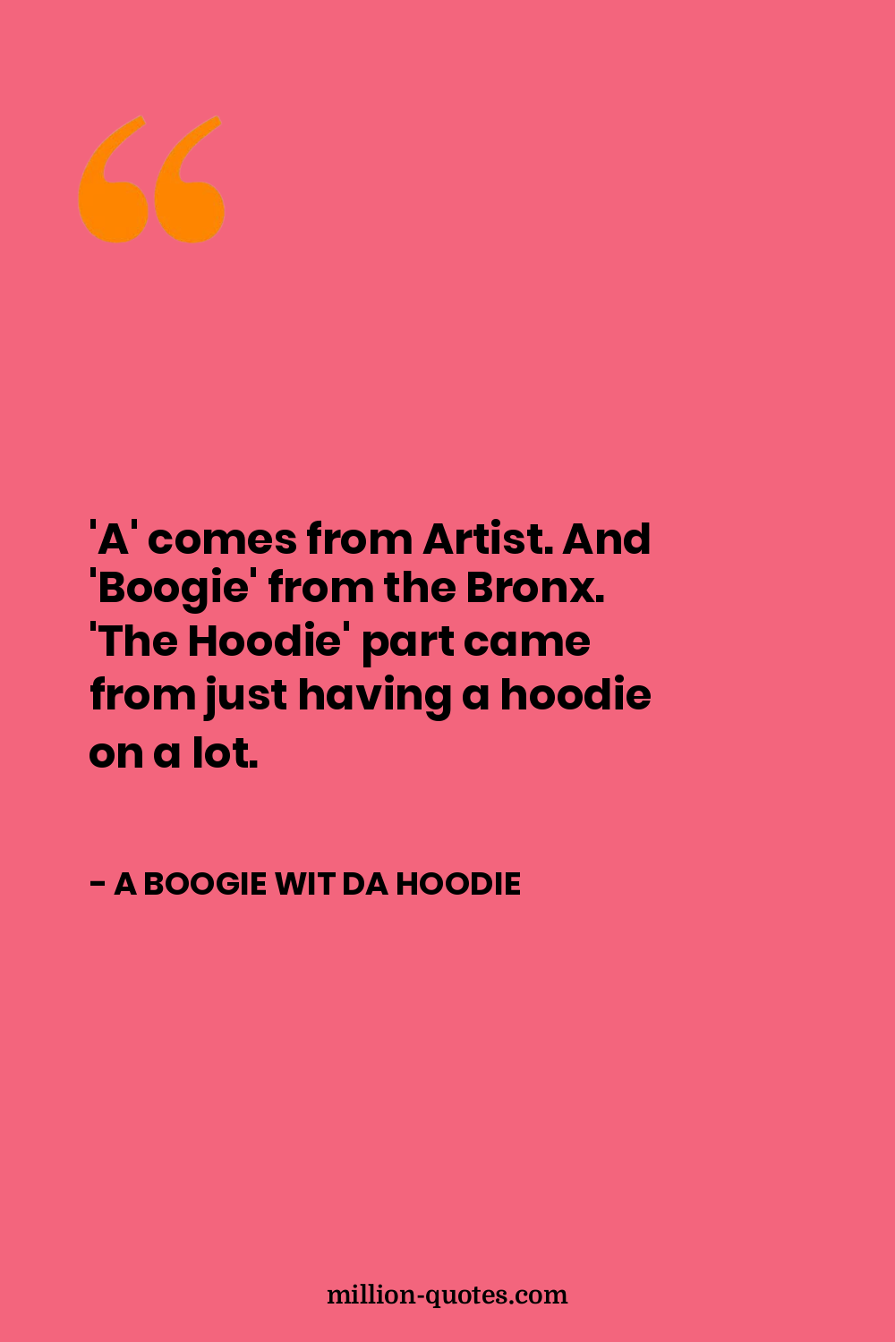 'A' comes from Artist. And 'Boogie' from the Bronx. 'The Hoodie' part came from just having a hoodie on a lot.