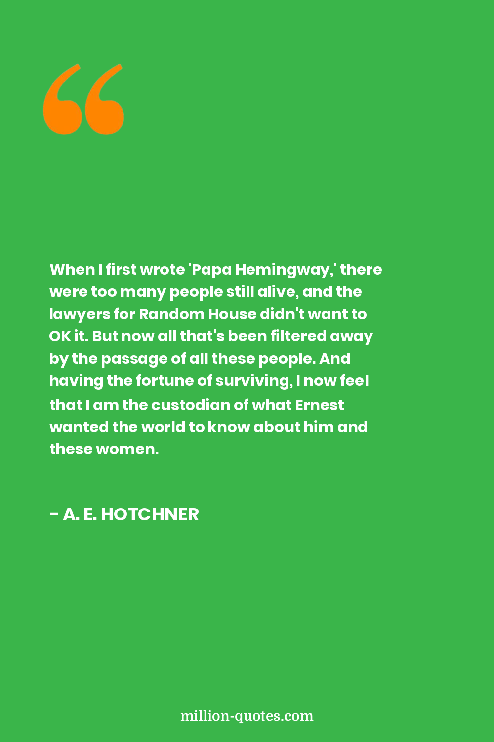 When I first wrote 'Papa Hemingway,' there were too many people still alive, and the lawyers for Random House didn't want to OK it. But now all that's been filtered away by the passage of all these people. And having the fortune of surviving, I now feel that I am the custodian of what Ernest wanted the world to know about him and these women.