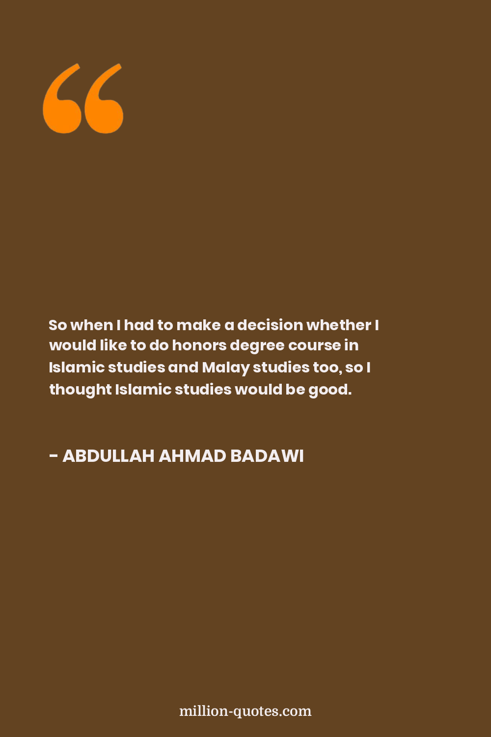 So when I had to make a decision whether I would like to do honors degree course in Islamic studies and Malay studies too, so I thought Islamic studies would be good.