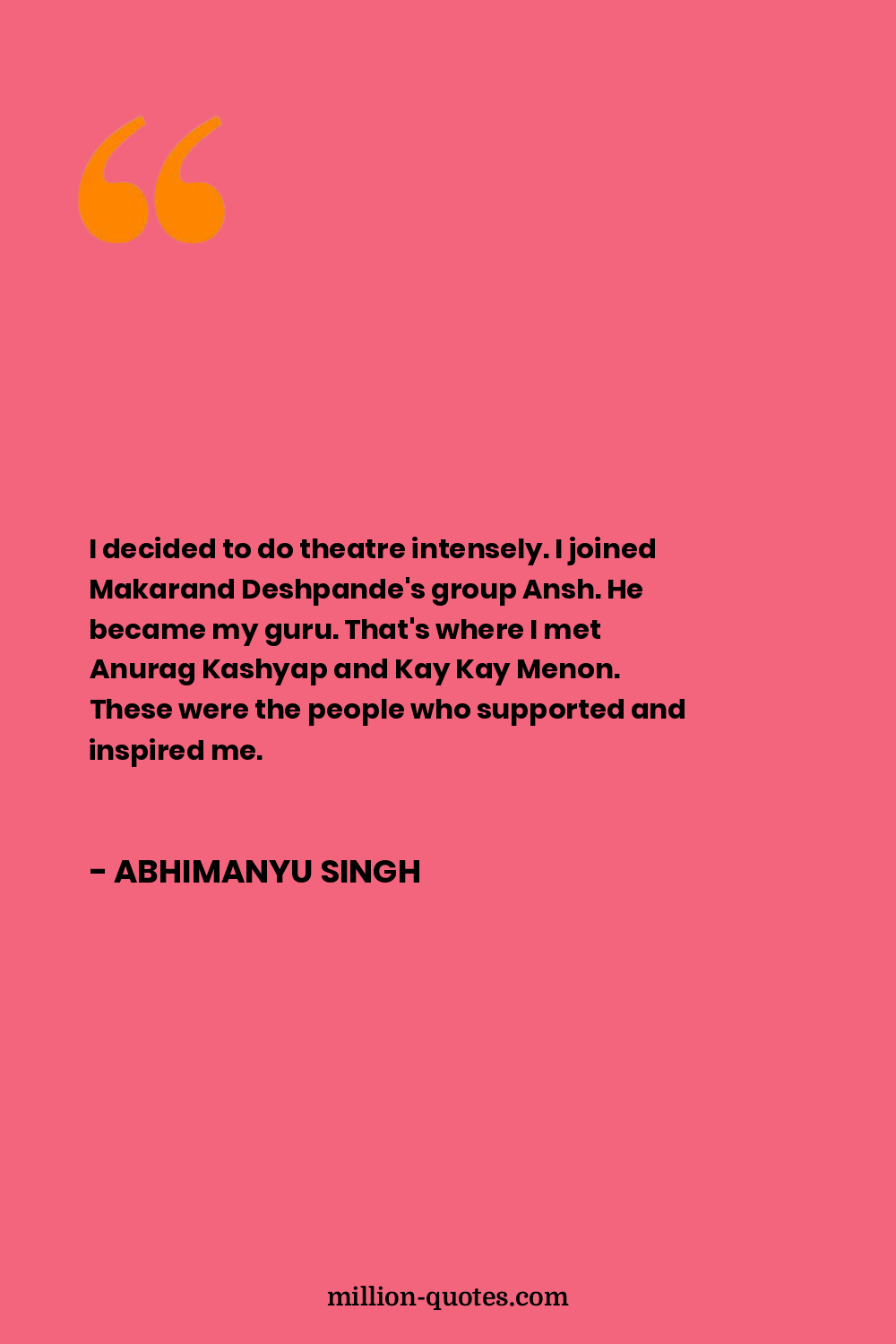 I decided to do theatre intensely. I joined Makarand Deshpande's group Ansh. He became my guru. That's where I met Anurag Kashyap and Kay Kay Menon. These were the people who supported and inspired me.