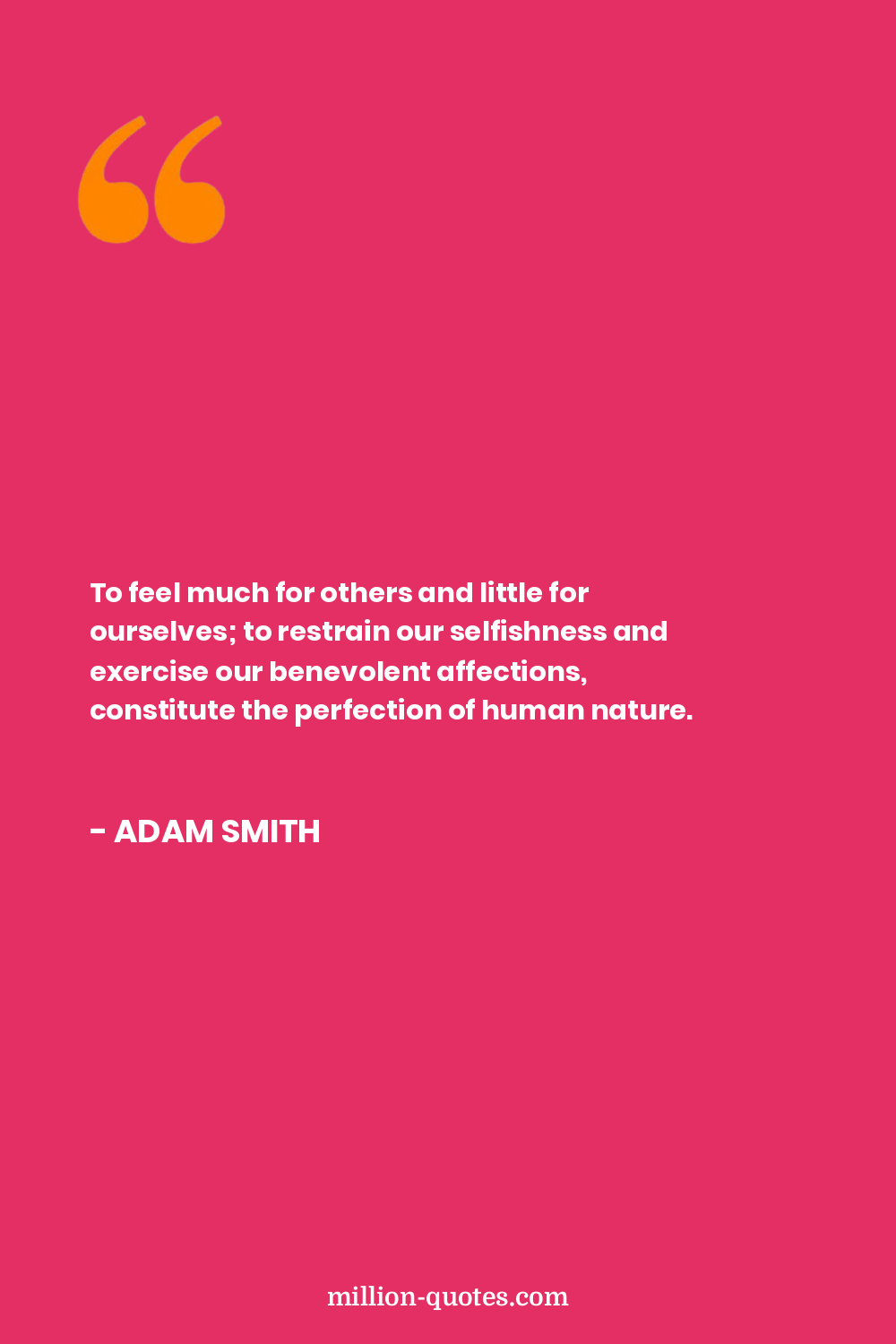 To feel much for others and little for ourselves; to restrain our selfishness and exercise our benevolent affections, constitute the perfection of human nature.
