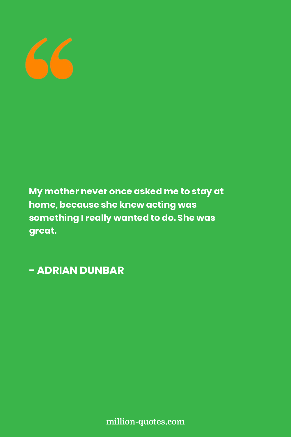 My mother never once asked me to stay at home, because she knew acting was something I really wanted to do. She was great.