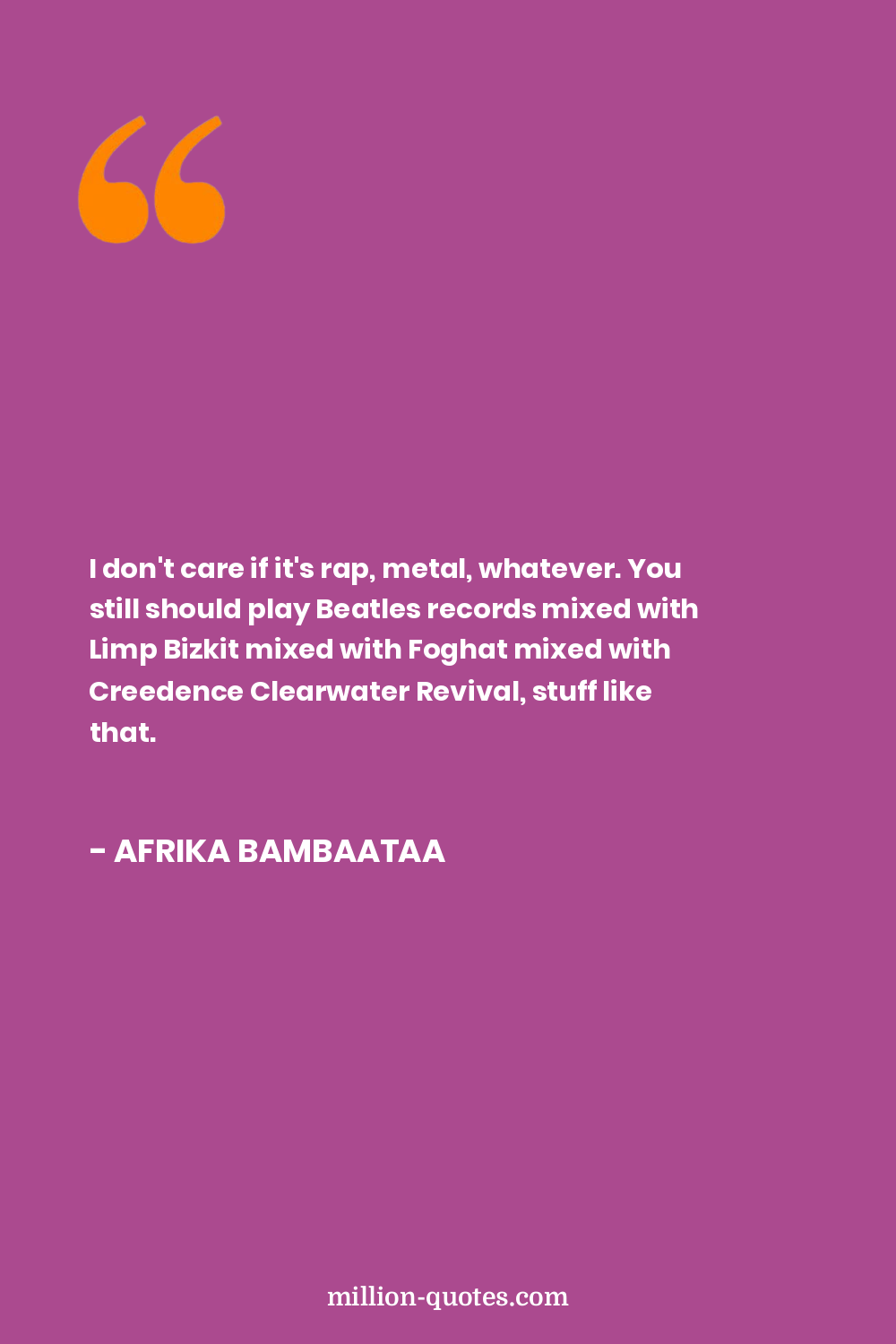 I don't care if it's rap, metal, whatever. You still should play Beatles records mixed with Limp Bizkit mixed with Foghat mixed with Creedence Clearwater Revival, stuff like that.