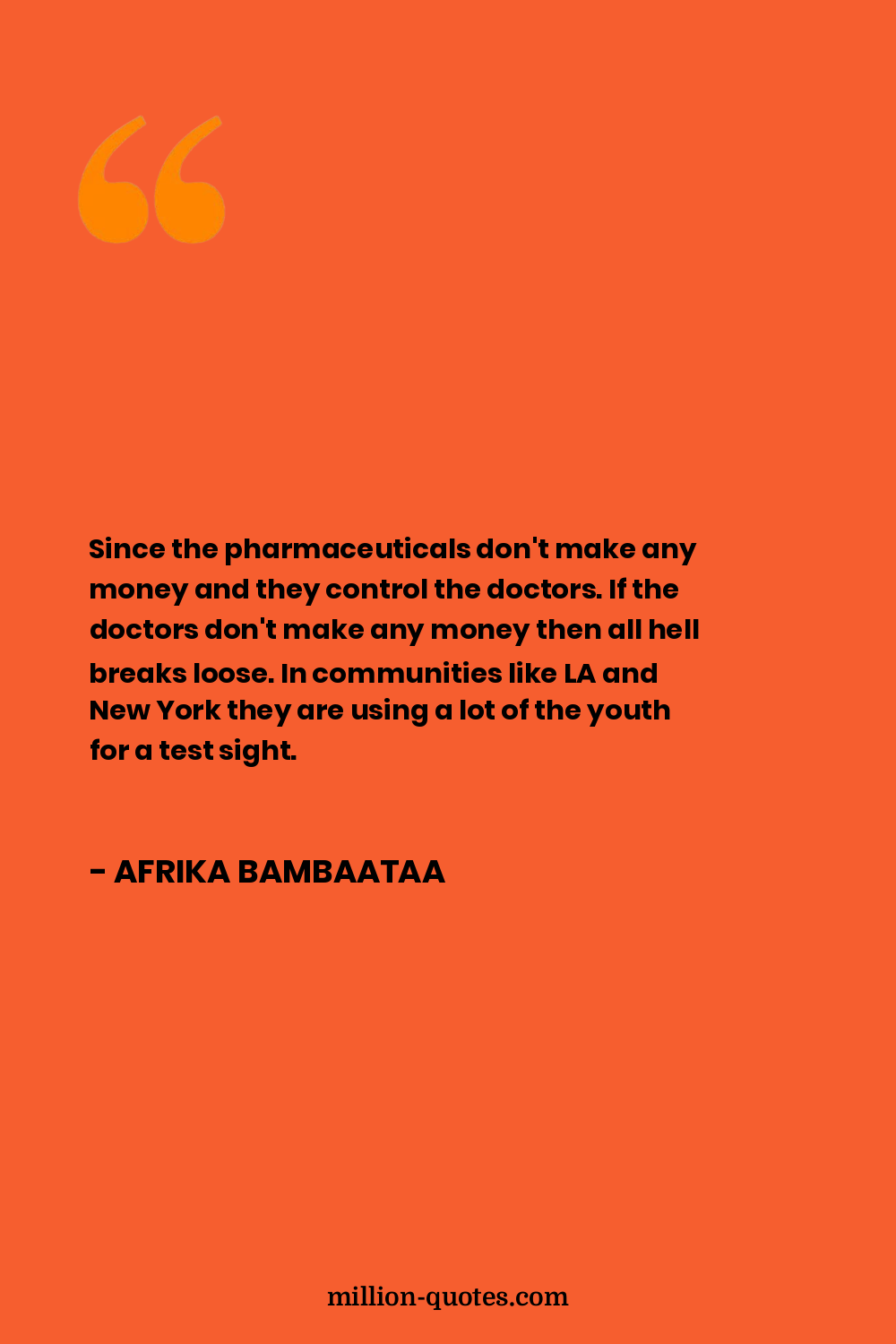 Since the pharmaceuticals don't make any money and they control the doctors. If the doctors don't make any money then all hell breaks loose. In communities like LA and New York they are using a lot of the youth for a test sight.