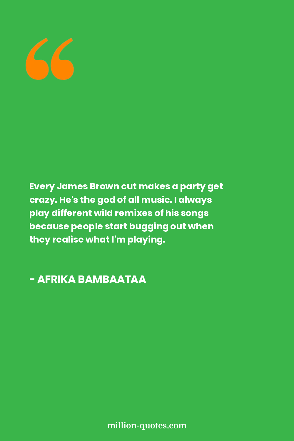 Every James Brown cut makes a party get crazy. He's the god of all music. I always play different wild remixes of his songs because people start bugging out when they realise what I'm playing.