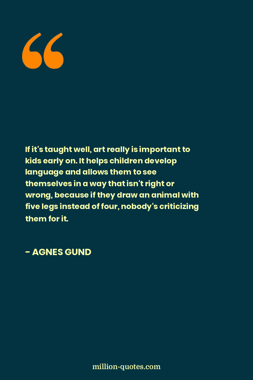 If it's taught well, art really is important to kids early on. It helps children develop language and allows them to see themselves in a way that isn't right or wrong, because if they draw an animal with five legs instead of four, nobody's criticizing them for it.