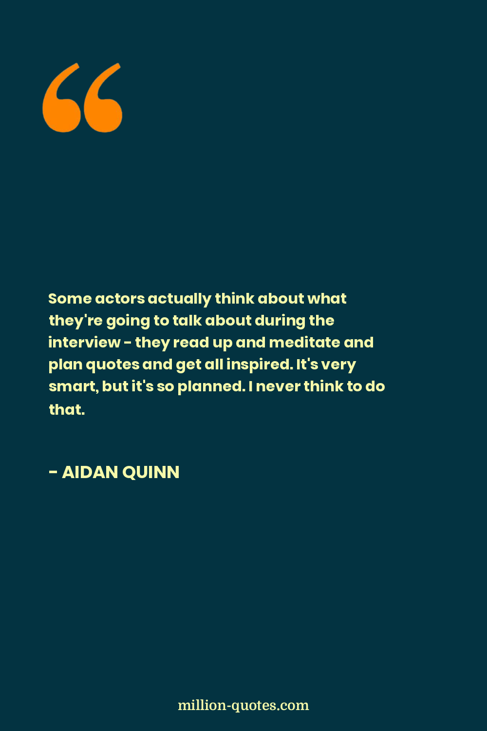 Some actors actually think about what they're going to talk about during the interview - they read up and meditate and plan quotes and get all inspired. It's very smart, but it's so planned. I never think to do that.
