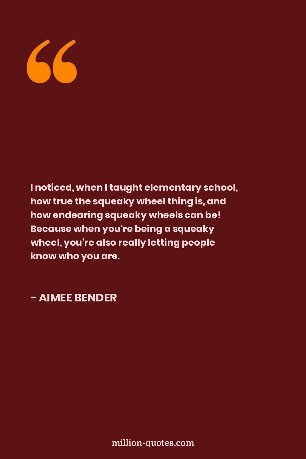 I noticed, when I taught elementary school, how true the squeaky wheel thing is, and how endearing squeaky wheels can be! Because when you're being a squeaky wheel, you're also really letting people know who you are.