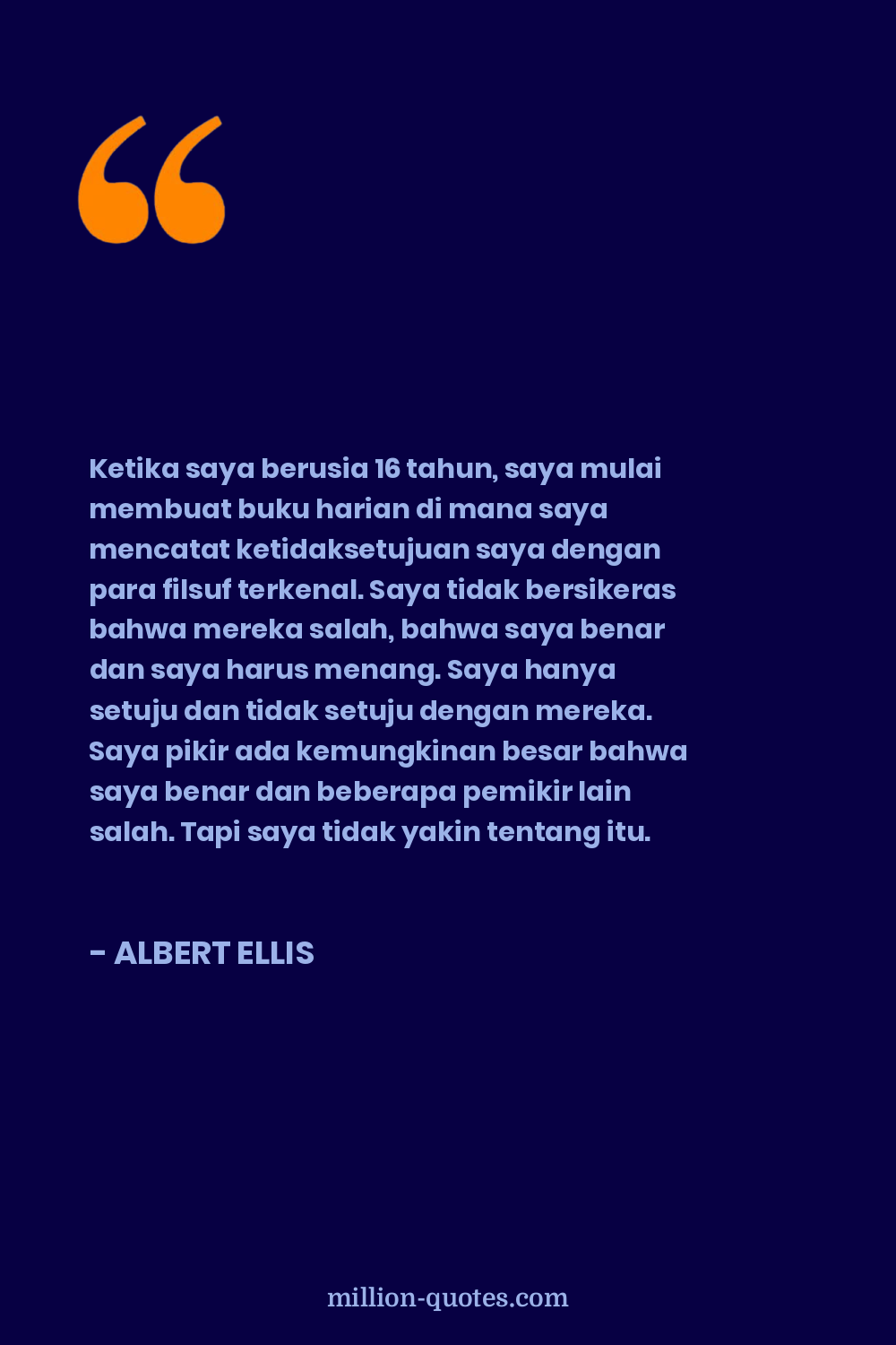 Ketika saya berusia 16 tahun, saya mulai membuat buku harian di mana saya mencatat ketidaksetujuan saya dengan para filsuf terkenal. Saya tidak bersikeras bahwa mereka salah, bahwa saya benar dan saya harus menang. Saya hanya setuju dan tidak setuju dengan mereka. Saya pikir ada kemungkinan besar bahwa saya benar dan beberapa pemikir lain salah. Tapi saya tidak yakin tentang itu.