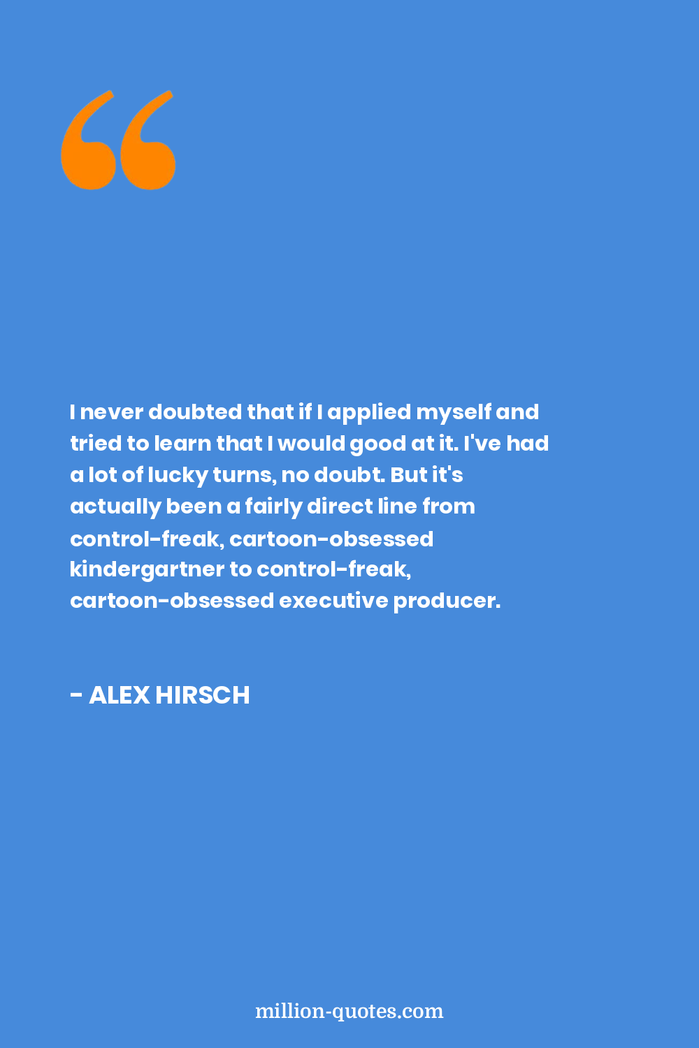 I never doubted that if I applied myself and tried to learn that I would good at it. I've had a lot of lucky turns, no doubt. But it's actually been a fairly direct line from control-freak, cartoon-obsessed kindergartner to control-freak, cartoon-obsessed executive producer.