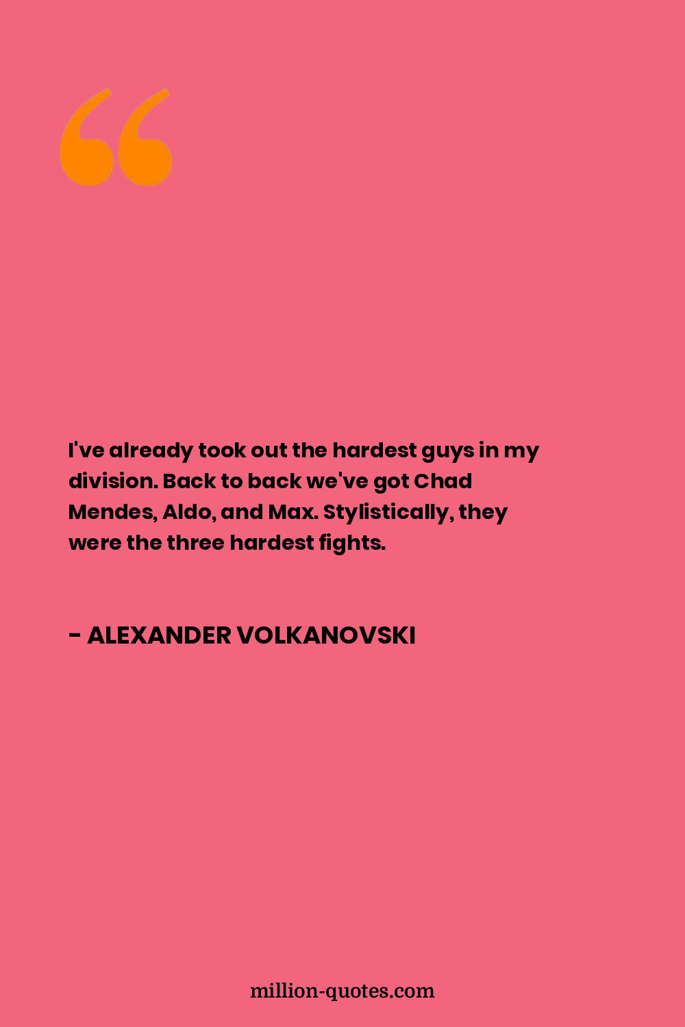 I've already took out the hardest guys in my division. Back to back we've got Chad Mendes, Aldo, and Max. Stylistically, they were the three hardest fights.