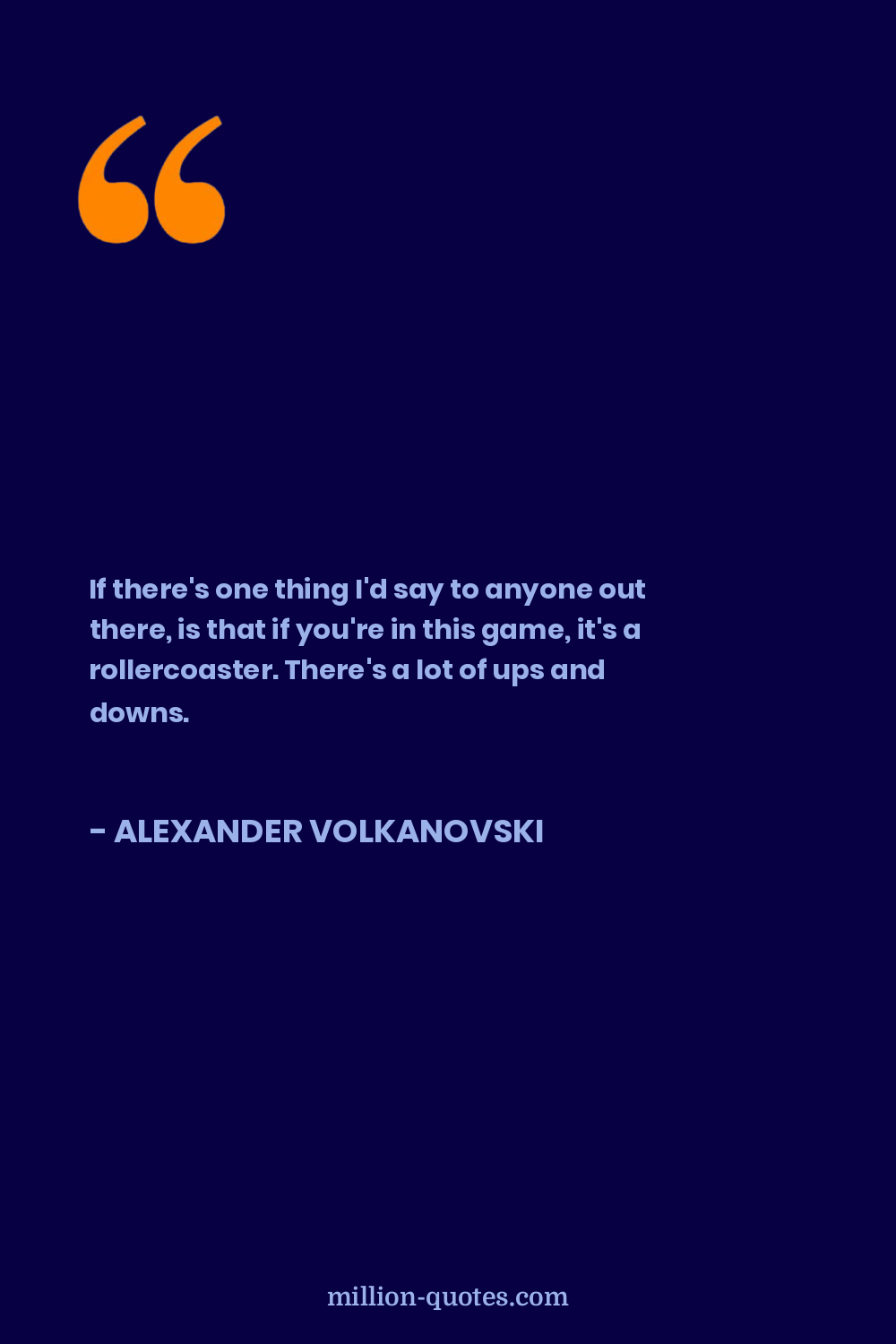 If there's one thing I'd say to anyone out there, is that if you're in this game, it's a rollercoaster. There's a lot of ups and downs.