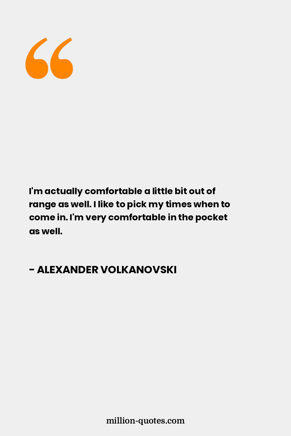 I'm actually comfortable a little bit out of range as well. I like to pick my times when to come in. I'm very comfortable in the pocket as well.