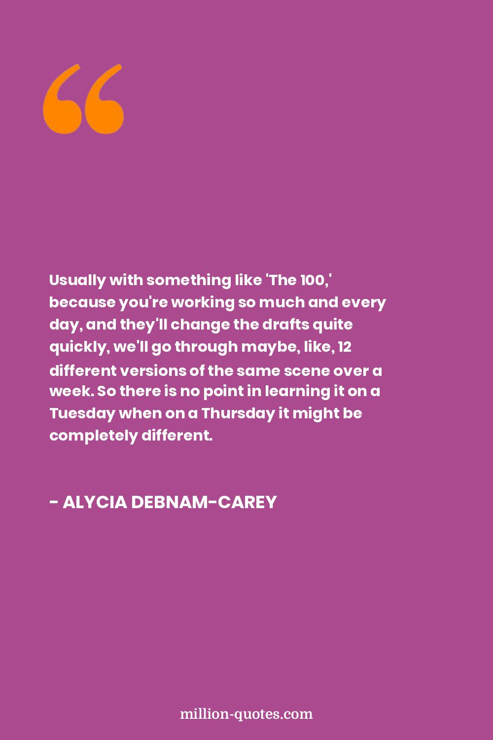 Usually with something like 'The 100,' because you're working so much and every day, and they'll change the drafts quite quickly, we'll go through maybe, like, 12 different versions of the same scene over a week. So there is no point in learning it on a Tuesday when on a Thursday it might be completely different.