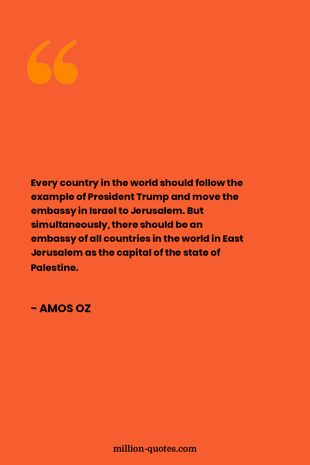 Every country in the world should follow the example of President Trump and move the embassy in Israel to Jerusalem. But simultaneously, there should be an embassy of all countries in the world in East Jerusalem as the capital of the state of Palestine.