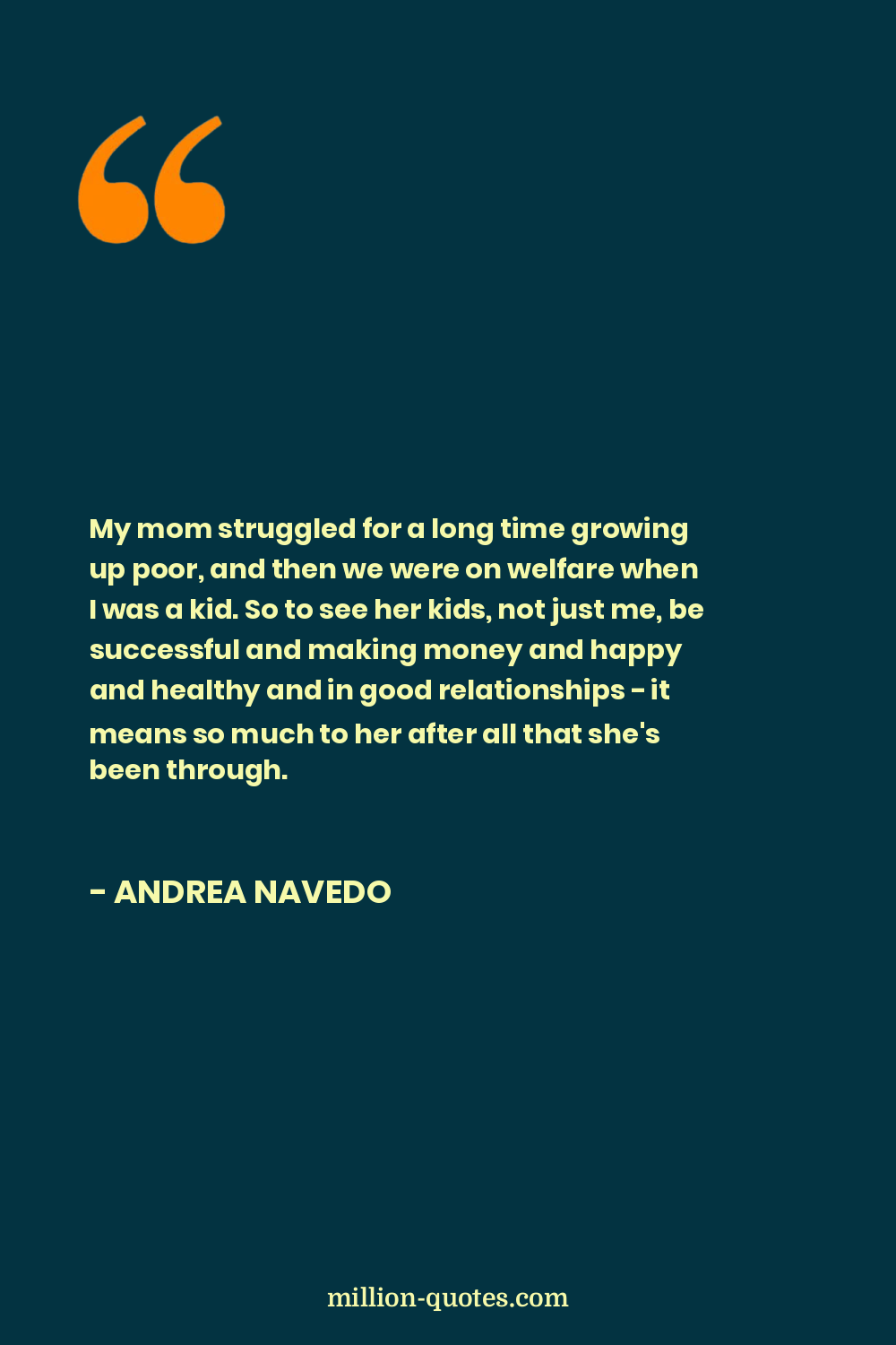 My mom struggled for a long time growing up poor, and then we were on welfare when I was a kid. So to see her kids, not just me, be successful and making money and happy and healthy and in good relationships - it means so much to her after all that she's been through.