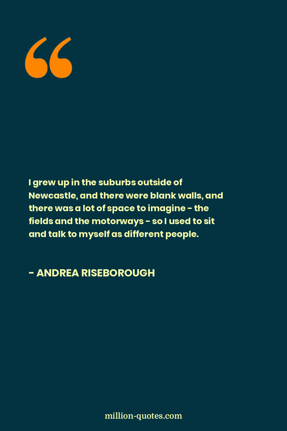 I grew up in the suburbs outside of Newcastle, and there were blank walls, and there was a lot of space to imagine - the fields and the motorways - so I used to sit and talk to myself as different people.