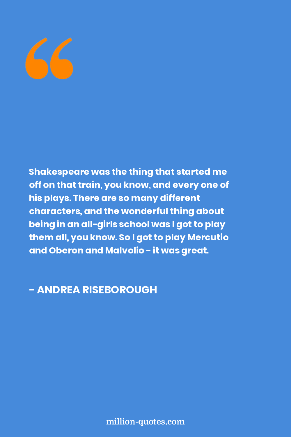 Shakespeare was the thing that started me off on that train, you know, and every one of his plays. There are so many different characters, and the wonderful thing about being in an all-girls school was I got to play them all, you know. So I got to play Mercutio and Oberon and Malvolio - it was great.