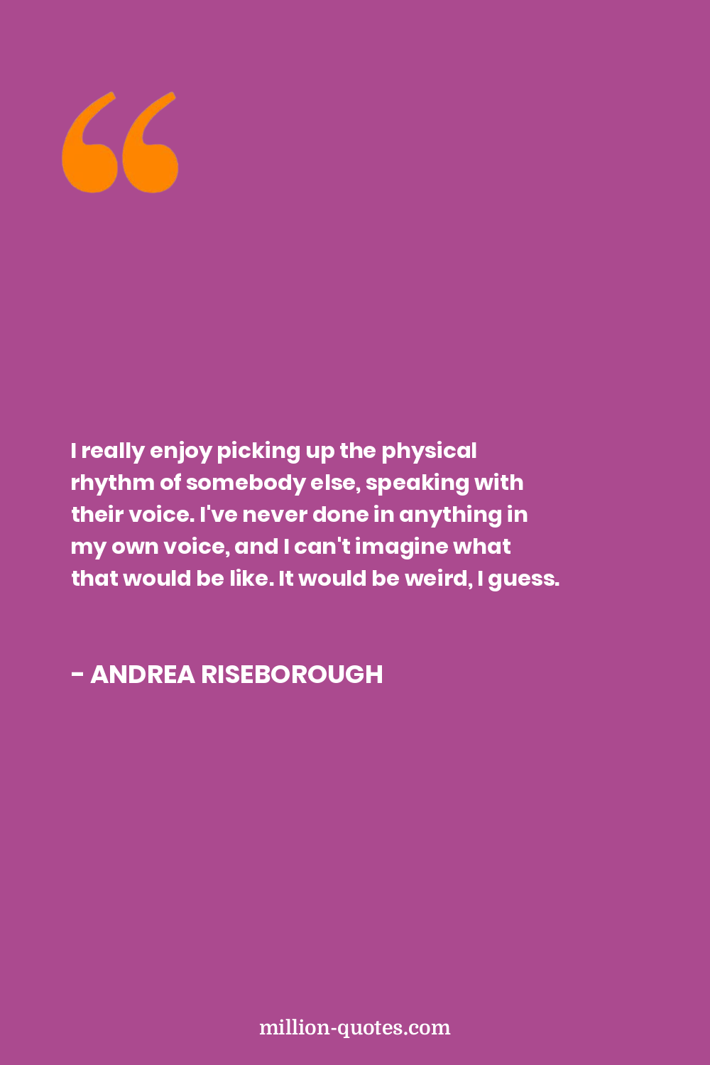 I really enjoy picking up the physical rhythm of somebody else, speaking with their voice. I've never done in anything in my own voice, and I can't imagine what that would be like. It would be weird, I guess.