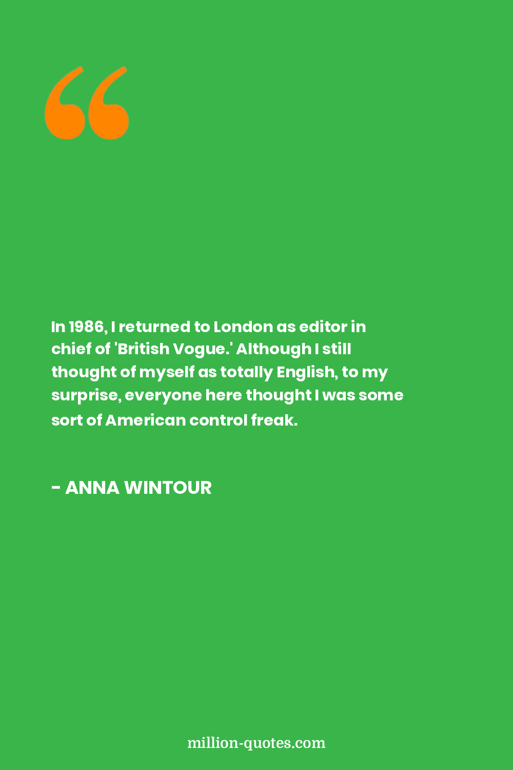 In 1986, I returned to London as editor in chief of 'British Vogue.' Although I still thought of myself as totally English, to my surprise, everyone here thought I was some sort of American control freak.