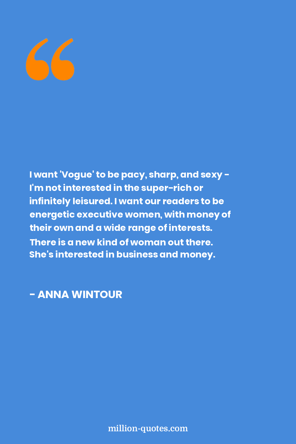I want 'Vogue' to be pacy, sharp, and sexy - I'm not interested in the super-rich or infinitely leisured. I want our readers to be energetic executive women, with money of their own and a wide range of interests. There is a new kind of woman out there. She's interested in business and money.
