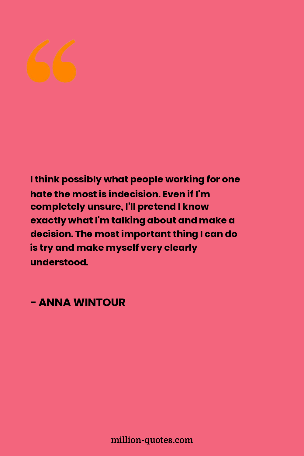I think possibly what people working for one hate the most is indecision. Even if I'm completely unsure, I'll pretend I know exactly what I'm talking about and make a decision. The most important thing I can do is try and make myself very clearly understood.