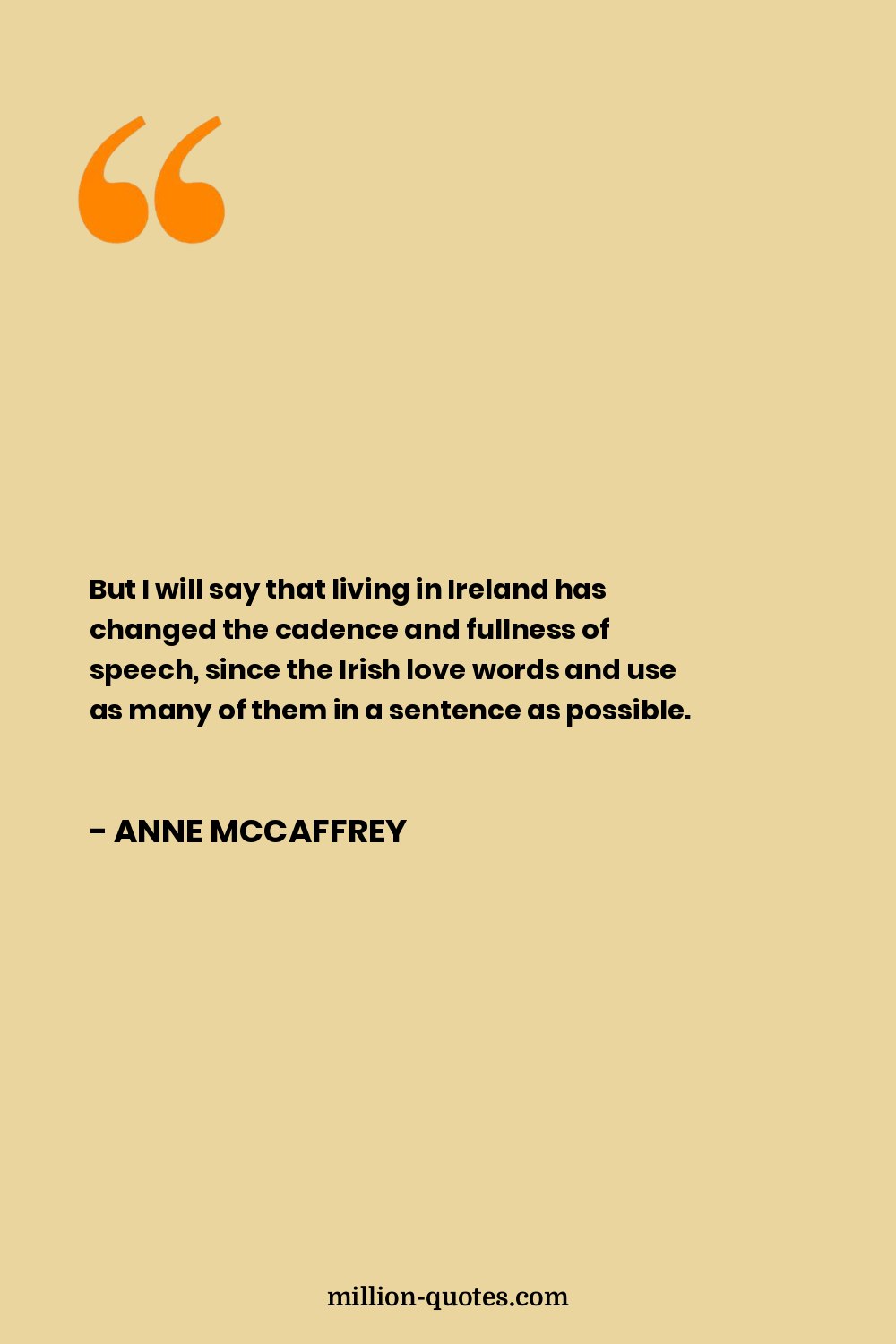But I will say that living in Ireland has changed the cadence and fullness of speech, since the Irish love words and use as many of them in a sentence as possible.
