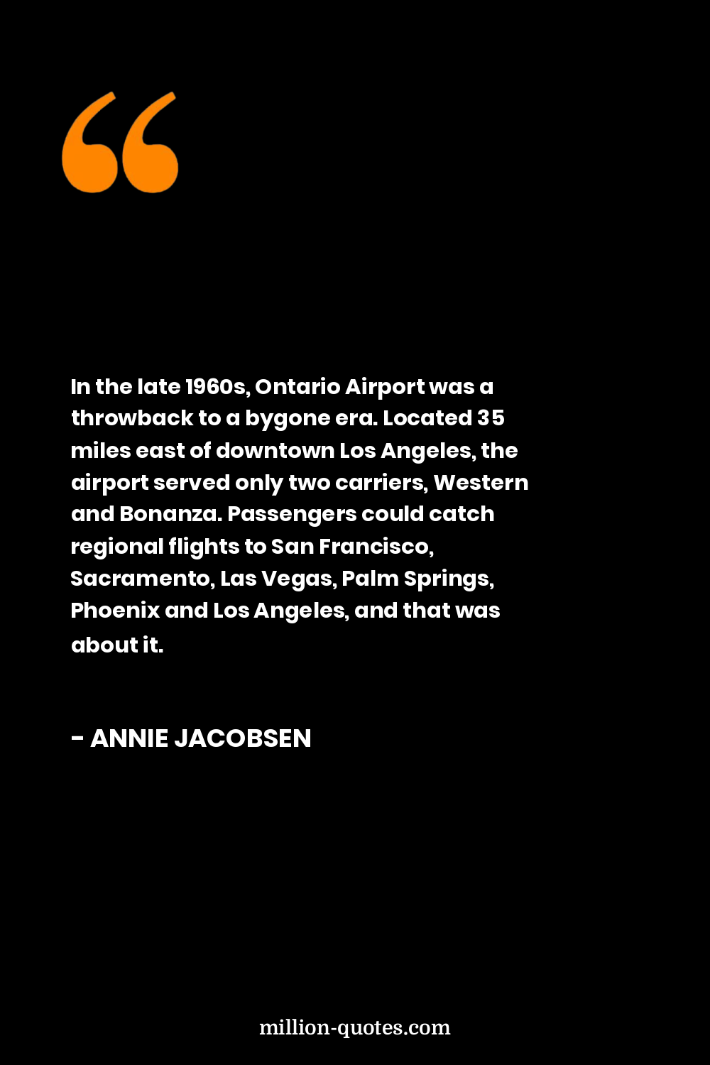 In the late 1960s, Ontario Airport was a throwback to a bygone era. Located 35 miles east of downtown Los Angeles, the airport served only two carriers, Western and Bonanza. Passengers could catch regional flights to San Francisco, Sacramento, Las Vegas, Palm Springs, Phoenix and Los Angeles, and that was about it.