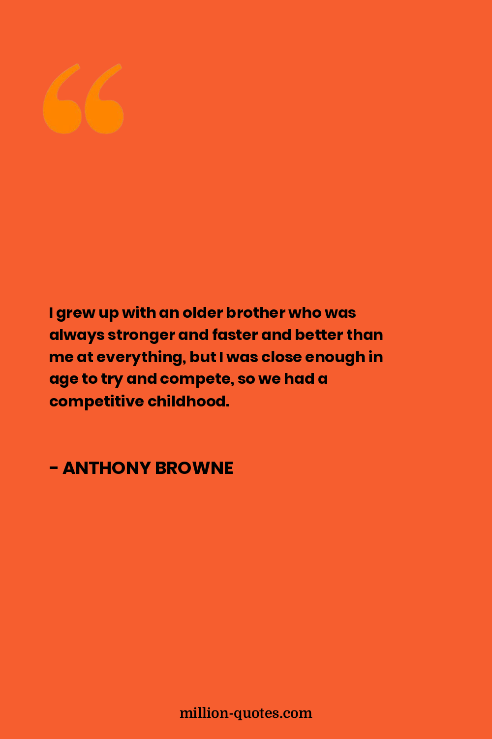 I grew up with an older brother who was always stronger and faster and better than me at everything, but I was close enough in age to try and compete, so we had a competitive childhood.