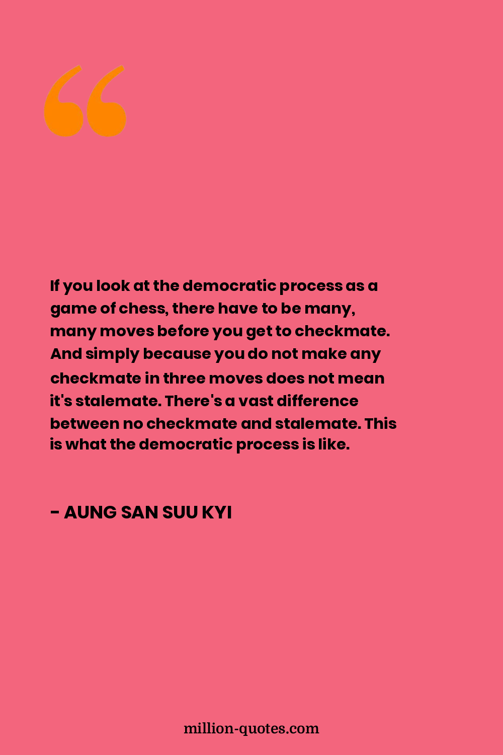 If you look at the democratic process as a game of chess, there have to be many, many moves before you get to checkmate. And simply because you do not make any checkmate in three moves does not mean it's stalemate. There's a vast difference between no checkmate and stalemate. This is what the democratic process is like.