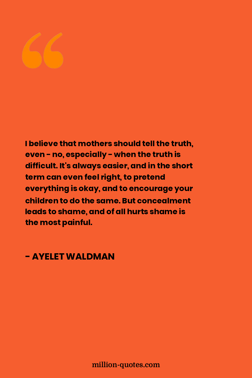 I believe that mothers should tell the truth, even - no, especially - when the truth is difficult. It's always easier, and in the short term can even feel right, to pretend everything is okay, and to encourage your children to do the same. But concealment leads to shame, and of all hurts shame is the most painful.