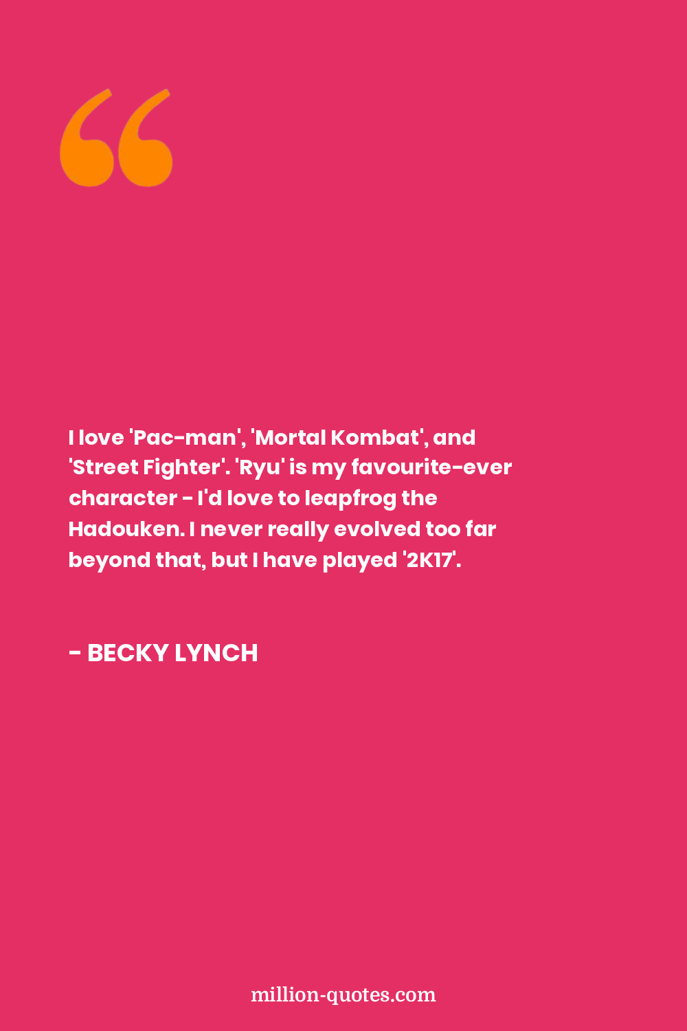 I love 'Pac-man', 'Mortal Kombat', and 'Street Fighter'. 'Ryu' is my favourite-ever character - I'd love to leapfrog the Hadouken. I never really evolved too far beyond that, but I have played '2K17'.