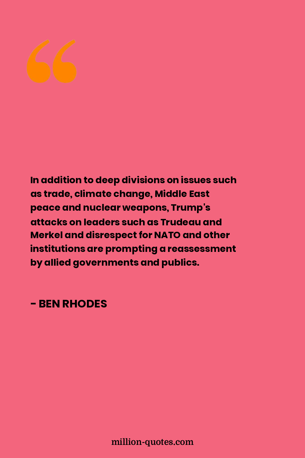 In addition to deep divisions on issues such as trade, climate change, Middle East peace and nuclear weapons, Trump's attacks on leaders such as Trudeau and Merkel and disrespect for NATO and other institutions are prompting a reassessment by allied governments and publics.