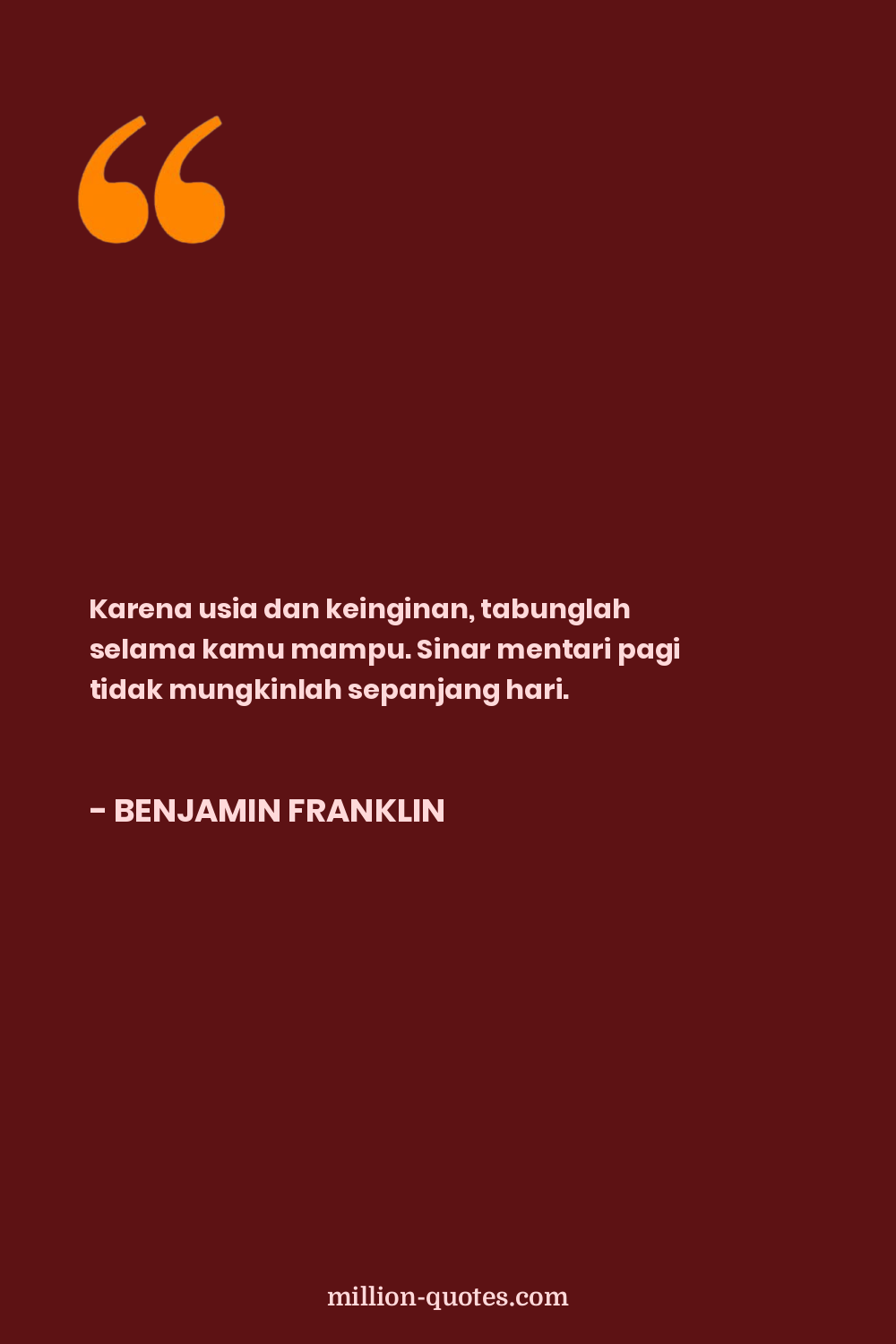 Jangan buang waktu atau uang, tetapi manfaatkan keduanya dengan sebaik-baiknya. Tanpa industri dan berhemat, tidak ada yang akan berhasil, dan dengan mereka segalanya.