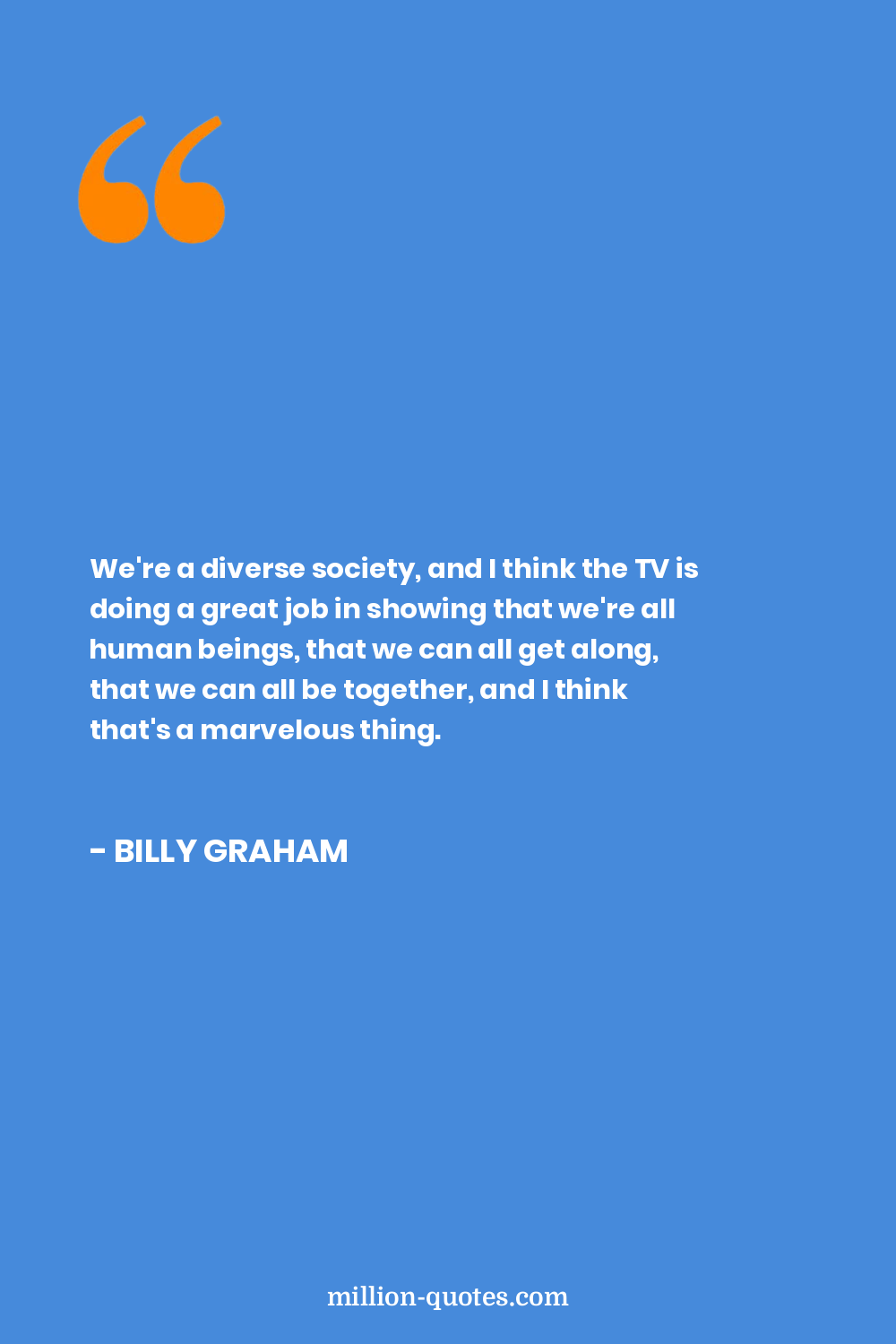 We're a diverse society, and I think the TV is doing a great job in showing that we're all human beings, that we can all get along, that we can all be together, and I think that's a marvelous thing.