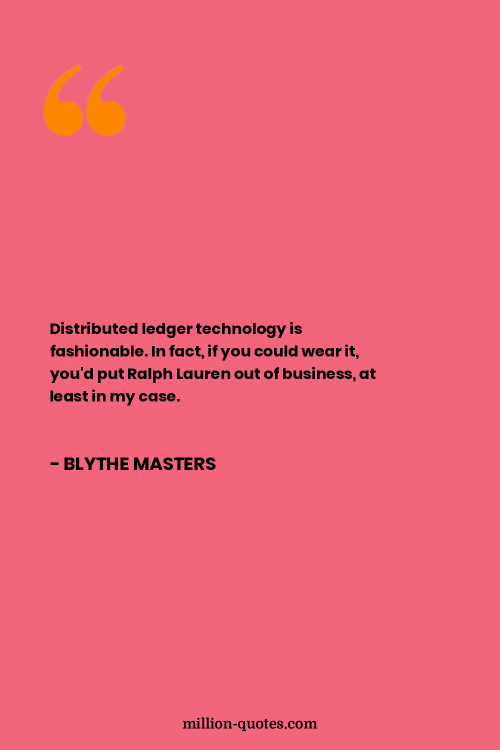 Distributed ledger technology is fashionable. In fact, if you could wear it, you'd put Ralph Lauren out of business, at least in my case.