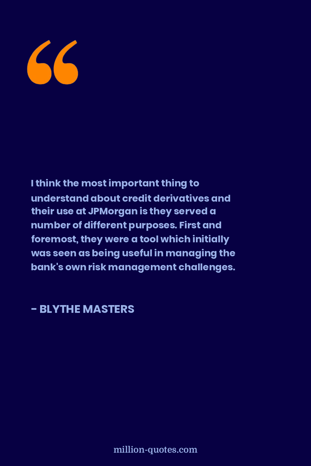 I think the most important thing to understand about credit derivatives and their use at JPMorgan is they served a number of different purposes. First and foremost, they were a tool which initially was seen as being useful in managing the bank's own risk management challenges.