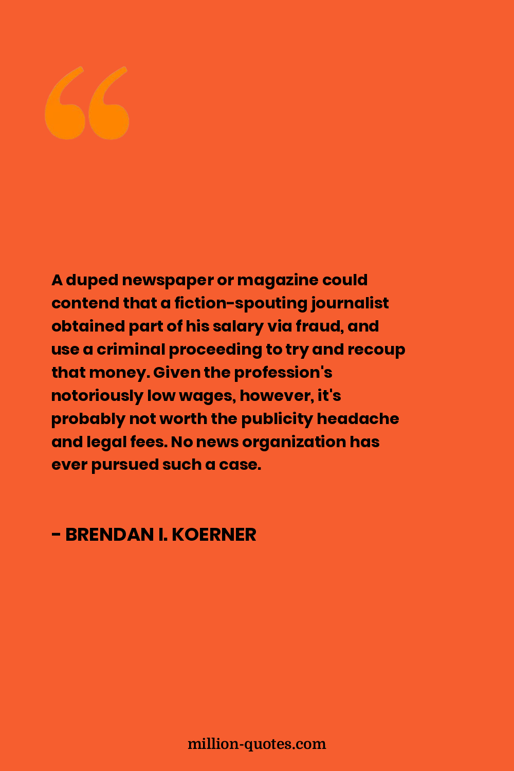 A duped newspaper or magazine could contend that a fiction-spouting journalist obtained part of his salary via fraud, and use a criminal proceeding to try and recoup that money. Given the profession's notoriously low wages, however, it's probably not worth the publicity headache and legal fees. No news organization has ever pursued such a case.