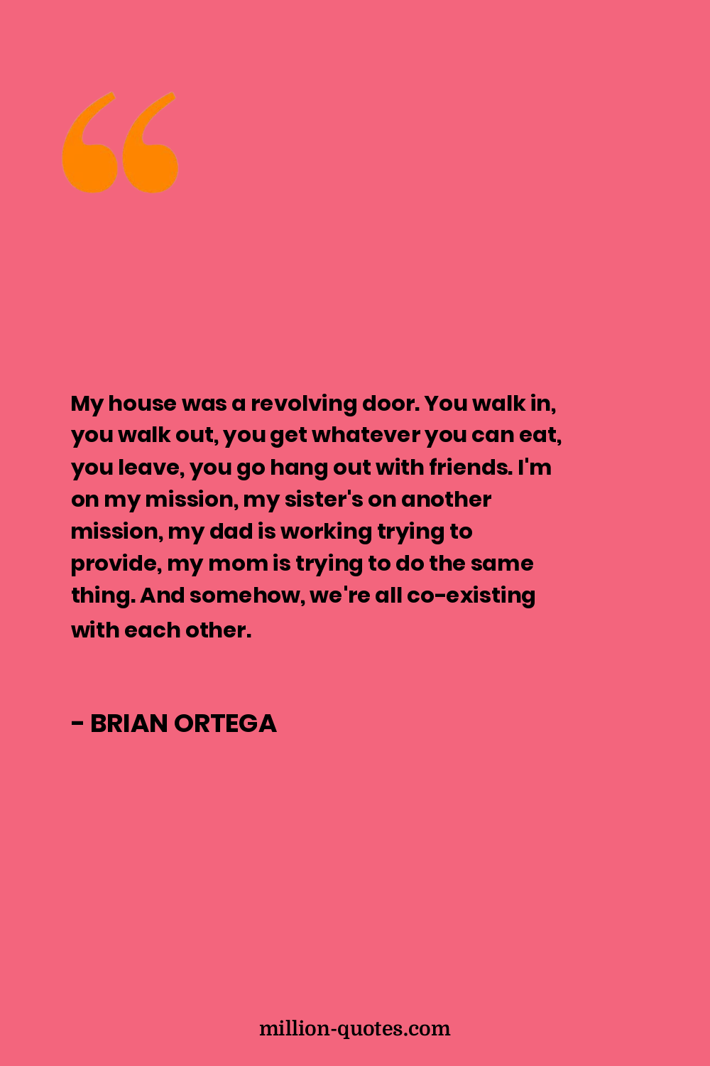 My house was a revolving door. You walk in, you walk out, you get whatever you can eat, you leave, you go hang out with friends. I'm on my mission, my sister's on another mission, my dad is working trying to provide, my mom is trying to do the same thing. And somehow, we're all co-existing with each other.