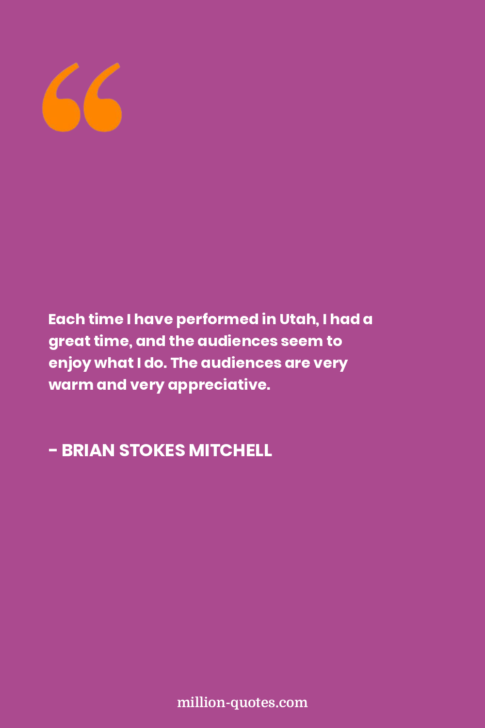 Each time I have performed in Utah, I had a great time, and the audiences seem to enjoy what I do. The audiences are very warm and very appreciative.