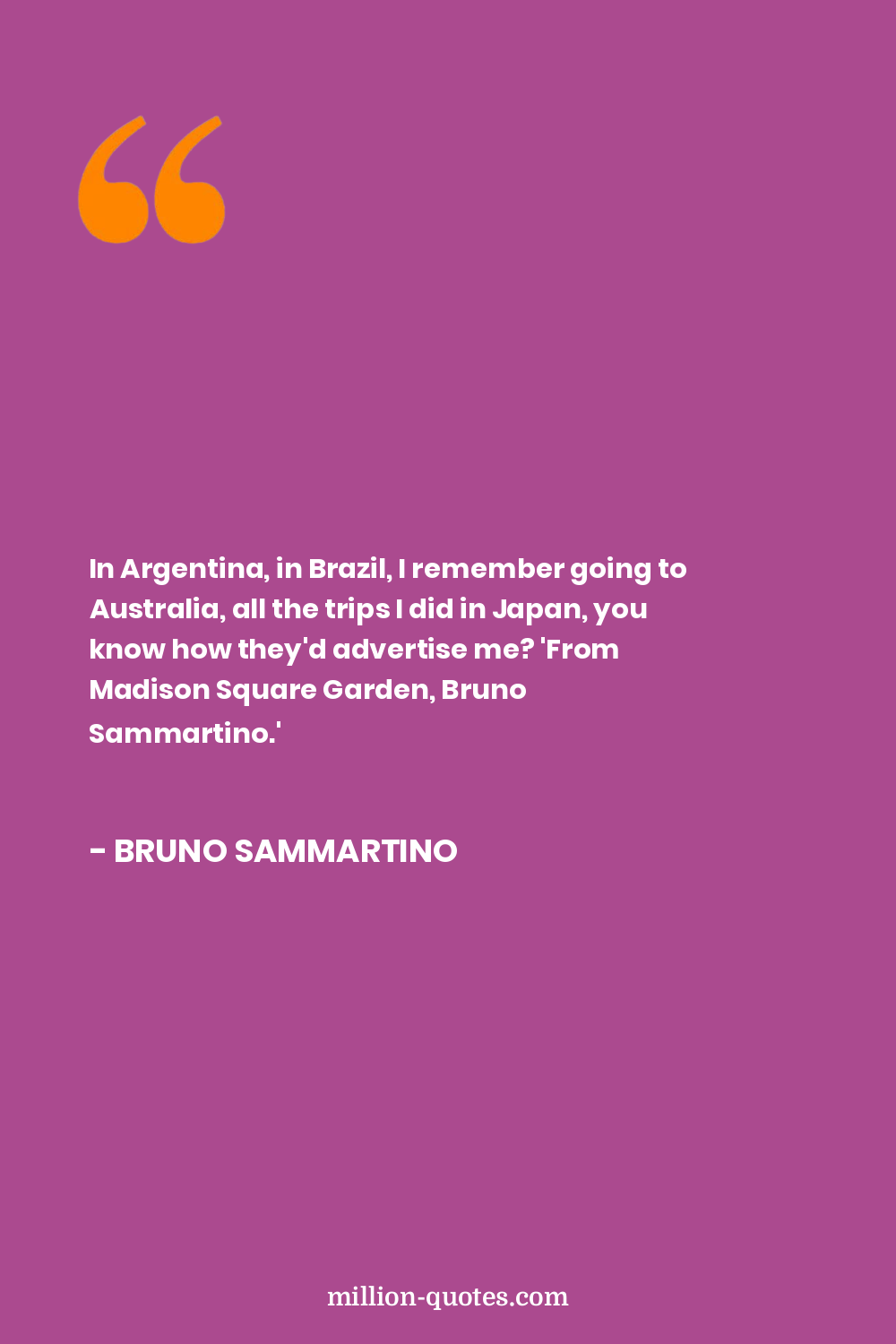 In Argentina, in Brazil, I remember going to Australia, all the trips I did in Japan, you know how they'd advertise me? 'From Madison Square Garden, Bruno Sammartino.'