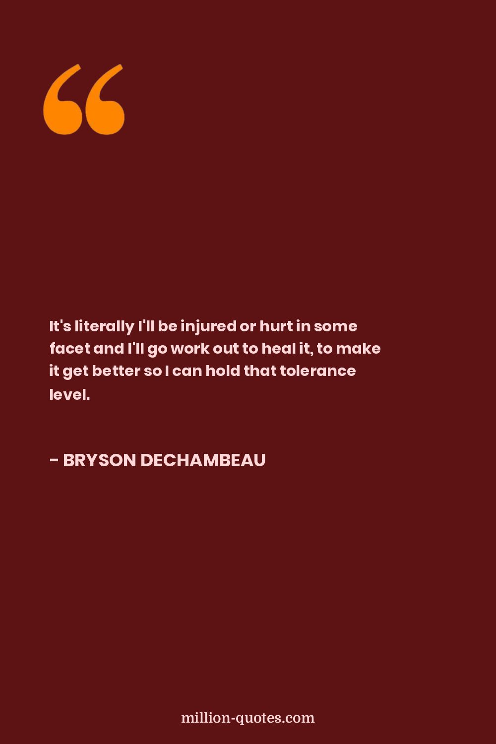 It's literally I'll be injured or hurt in some facet and I'll go work out to heal it, to make it get better so I can hold that tolerance level.