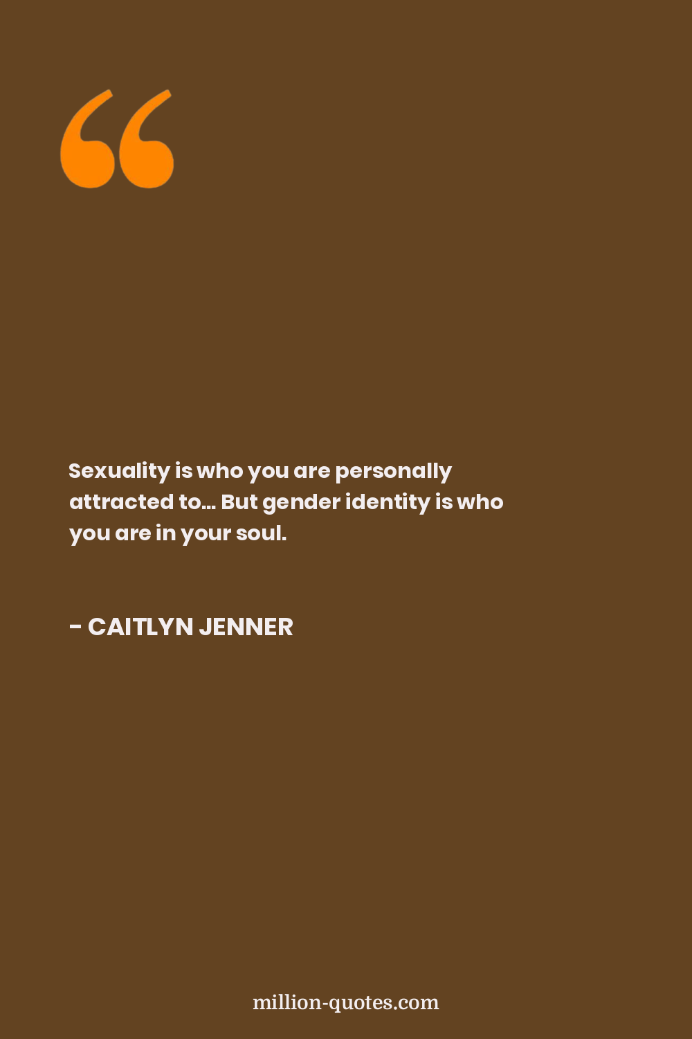 Sexuality is who you are personally attracted to... But gender identity is who you are in your soul.